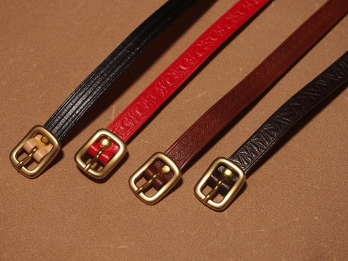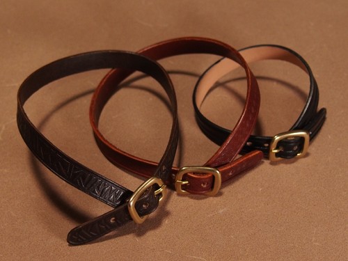 ベルトは薄い革を2枚貼り合わせ1㎜~1.5㎜厚の厚さで仕立ててあります。