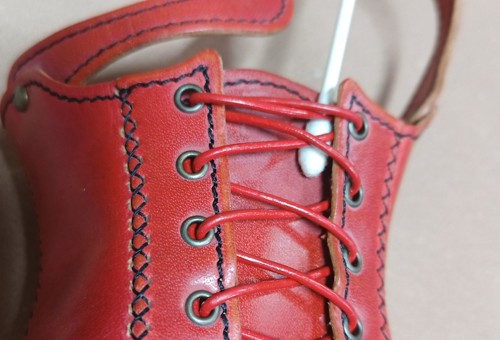 蝋引き加工がされている場合、染み込んだ蝋が染料をはじくため、コバの染色がきれいに入らないことがあります。