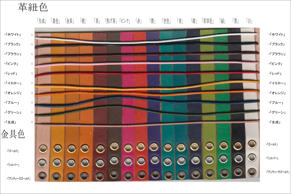 糸・革紐・金具の色見本